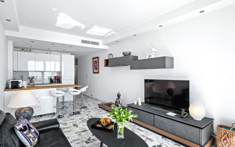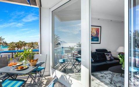 The moment you step inside, you’ll be captivated by the chic and contemporary design of this elegant apartment. Floor-to-ceiling windows frame the azure Mediterranean Sea, providing a picturesque backdrop to your stay. Whether you’re enjoying a morning coffee or a glass of wine at sunset, the sea view from your apartment is nothing short of spectacular.